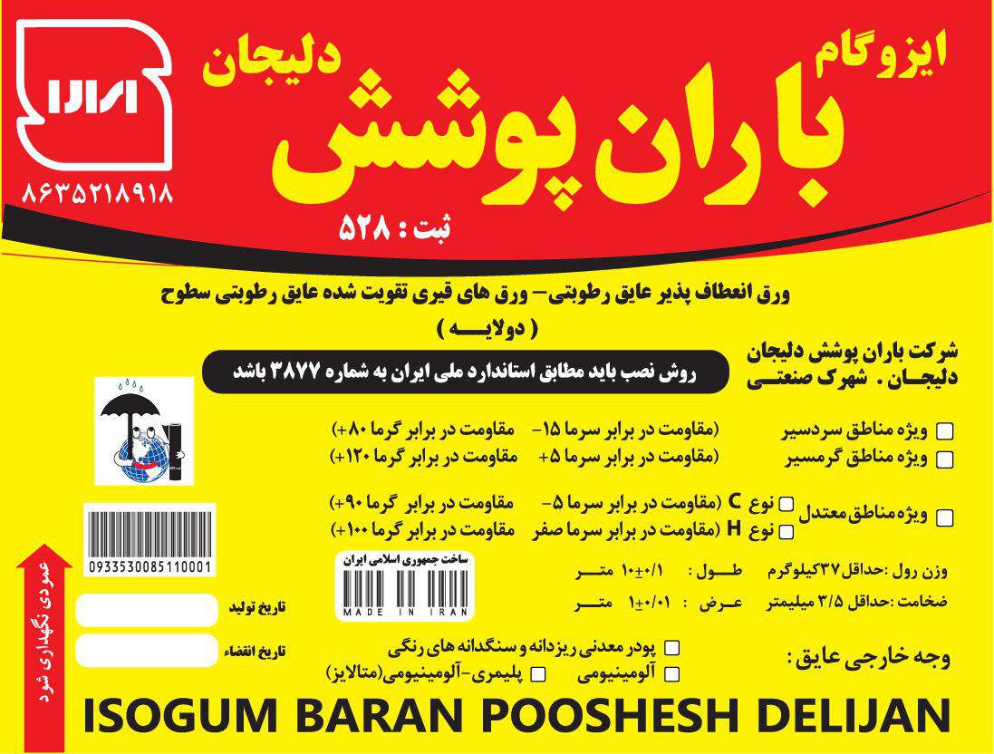 محصولات شرکت باران پوشش دلیجان در دو نوع پایه پلیمری و مخلوطی از پلیمری و اکسیده تولید می شوند.